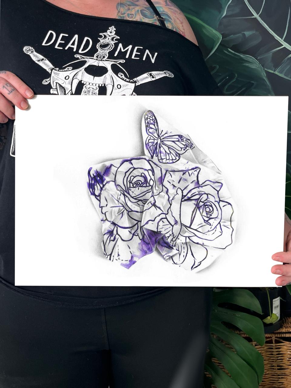 A collection of hyper-realistic drawings done in lightfast coloured pencils, of used stencils collected and photographed from tattoos I’ve felt a particular resonance with.